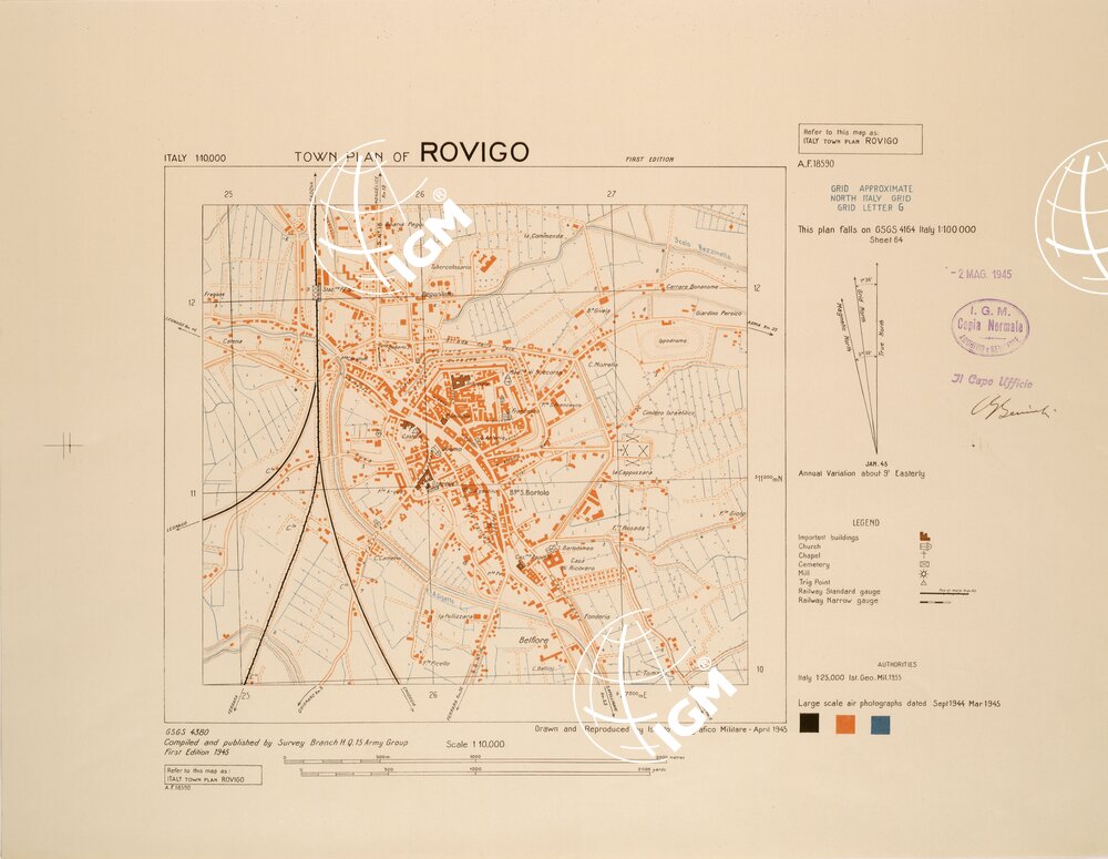 Riproduzione IGM della carta del Survey Branch H. Q. 15 Army Group.