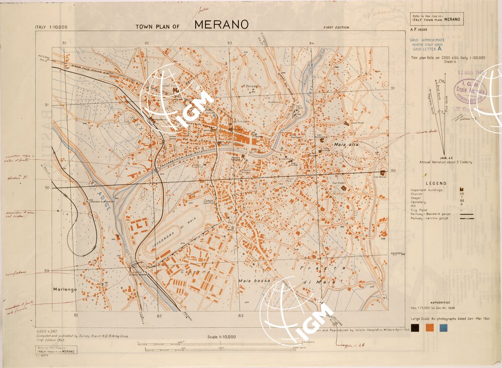 Riproduzione IGM della carta del Survey Branch H. Q. 15 Army Group.