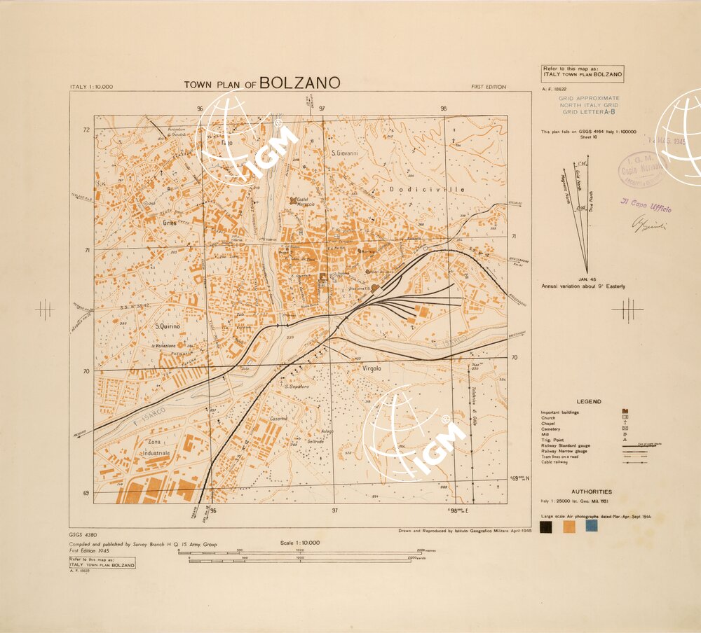 Riproduzione IGM della carta del Survey Branch H. Q. 15 Army Group.