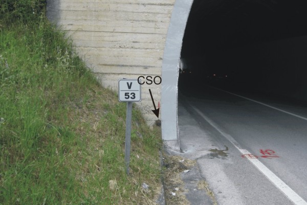 | Contrassegni | [{"simbolo_contrassegno":"B1","materializzazione":"(CSO) – Bullone infisso sul fronte dell'ingresso della galleria, lato sinistro, in corrispondenza del km 53+500"}] |