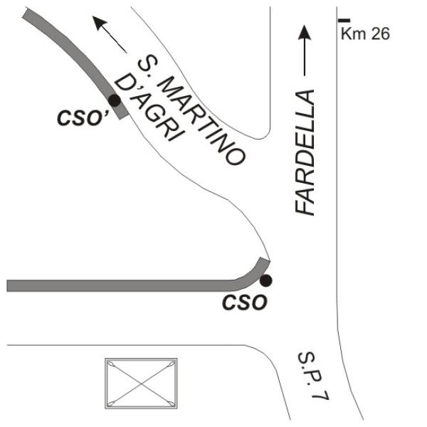 [{"simbolo_contrassegno":"B1","materializzazione":"(CSO) – Bullone infisso nel muro di contenimento posto sul lato destro della strada per contrada Serra, difronte al Cimitero"},{"simbolo_contrassegno":"B4","materializzazione":"(CSO') – Centrino universale infisso sul cordolo laterale della strada per S. Martino d'Agri, a 1 metro dalla testata"}]