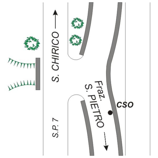 | Contrassegni | [{"simbolo_contrassegno":"B1","materializzazione":"(CSO) – Bullone infisso nel muro di scarpa posto sul lato sinistro della stradina che conduce alla Fraz. S. Pietro, in prossimit\u00e0 di un fontanile"}] |