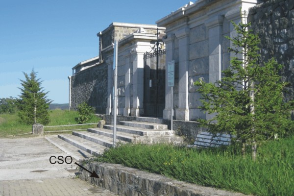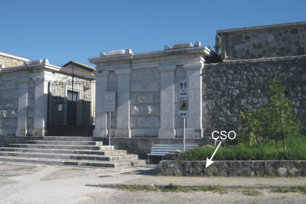[{"simbolo_contrassegno":"B1","materializzazione":"(CSO) – Bullone infisso nel cordolo dell'aiuola a destra dell'ingresso al cimitero di San Chirico Raparo"}]