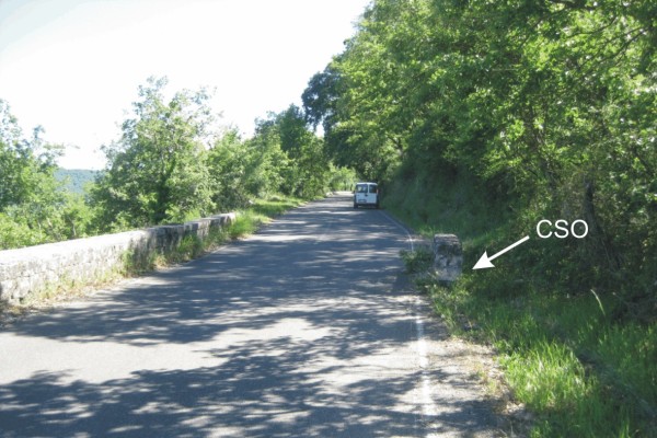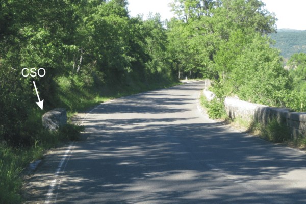 | Contrassegni | [{"simbolo_contrassegno":"B1","materializzazione":"(CSO) – Bullone infisso nel sifone posto al bordo carreggiata, lato monte"}] |