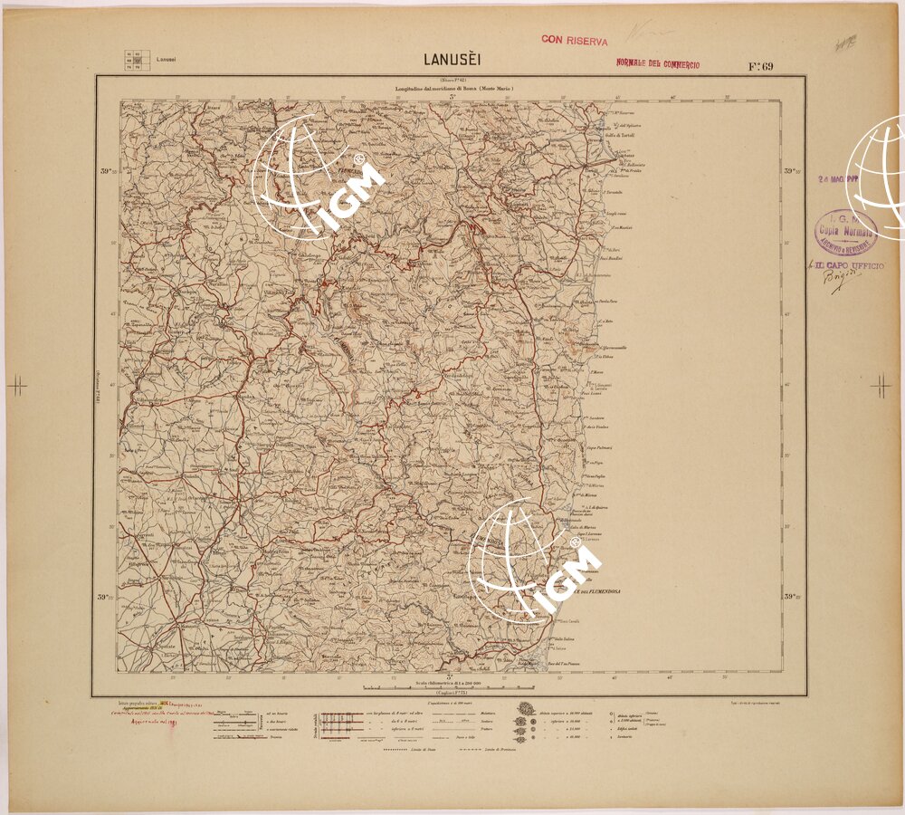 CARTA DEL REGNO D'ITALIA AL 200.000 – FOGLIO 69 – LANUSEI
