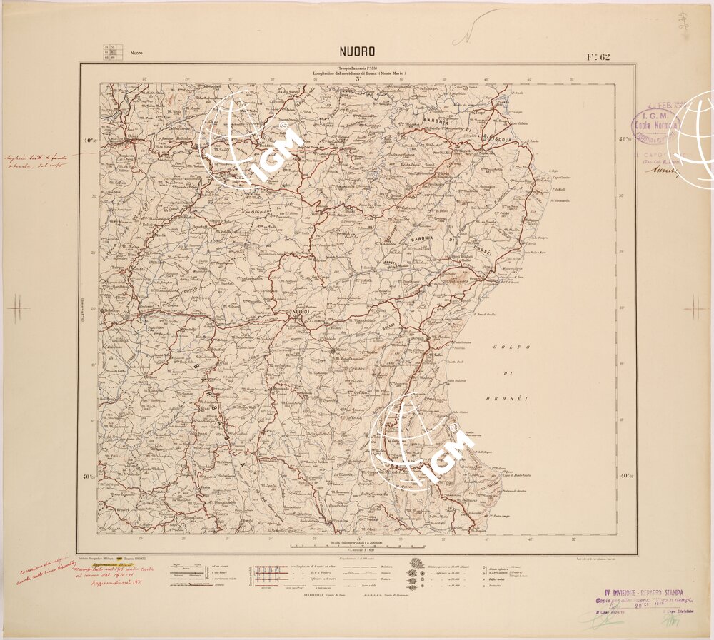 CARTA DEL REGNO D'ITALIA AL 200.000 – FOGLIO 62 – NUORO