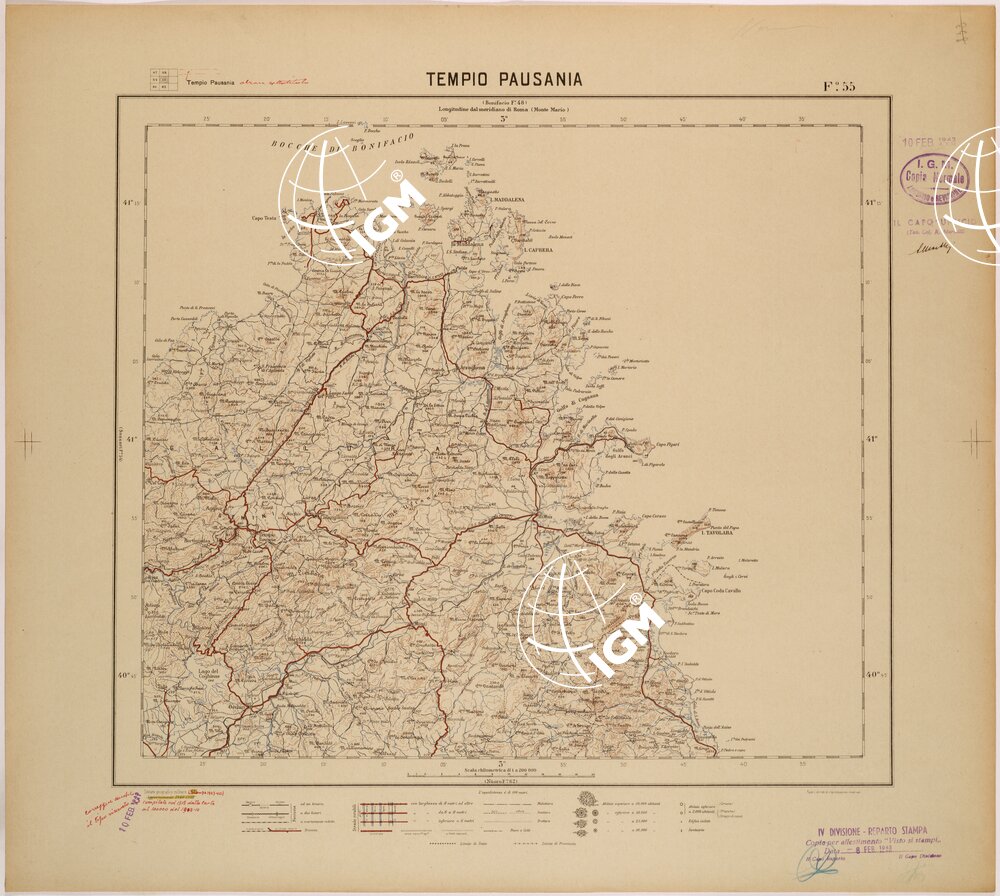 CARTA DEL REGNO D'ITALIA AL 200.000 – FOGLIO 55 – TEMPIO PAUSANIA