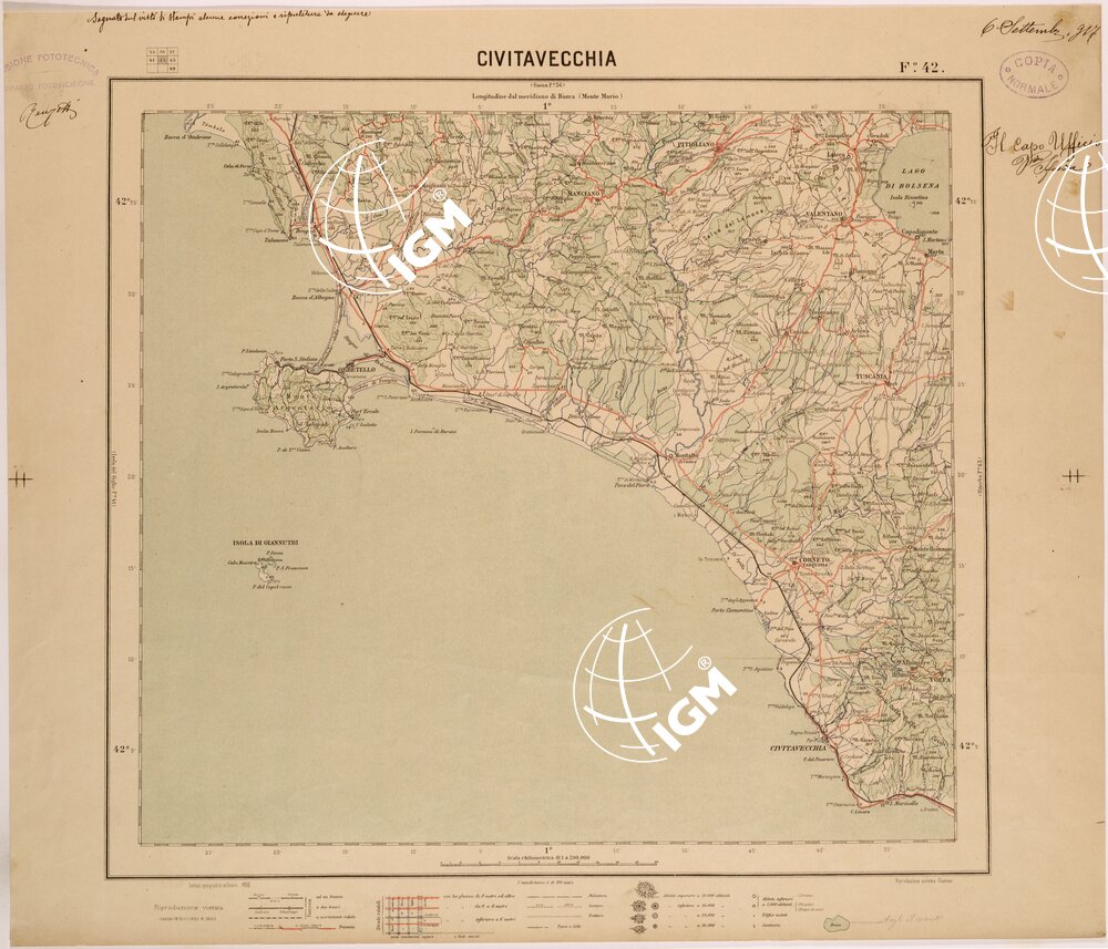 CARTA DEL REGNO D'ITALIA AL 200.000 – FOGLIO 42 – CIVITAVECCHIA
