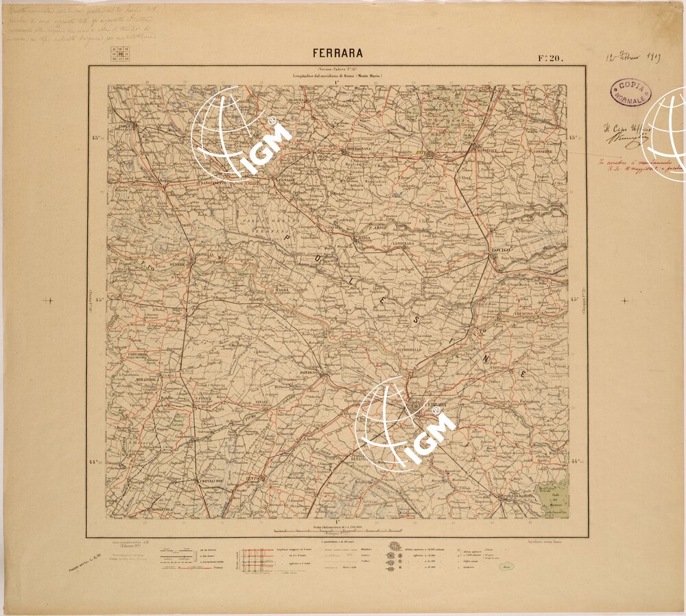 | Titolo proprio | CARTA DEL REGNO D'ITALIA AL 200.000 – FOGLIO 20 – FERRARA |