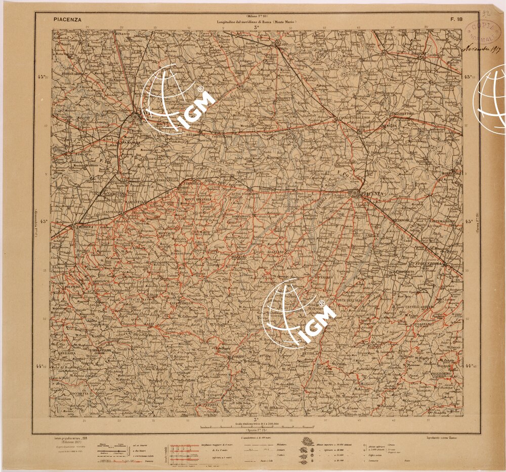 CARTA DEL REGNO D’ITALIA AL 200.000 – FOGLIO 18 – PIACENZA