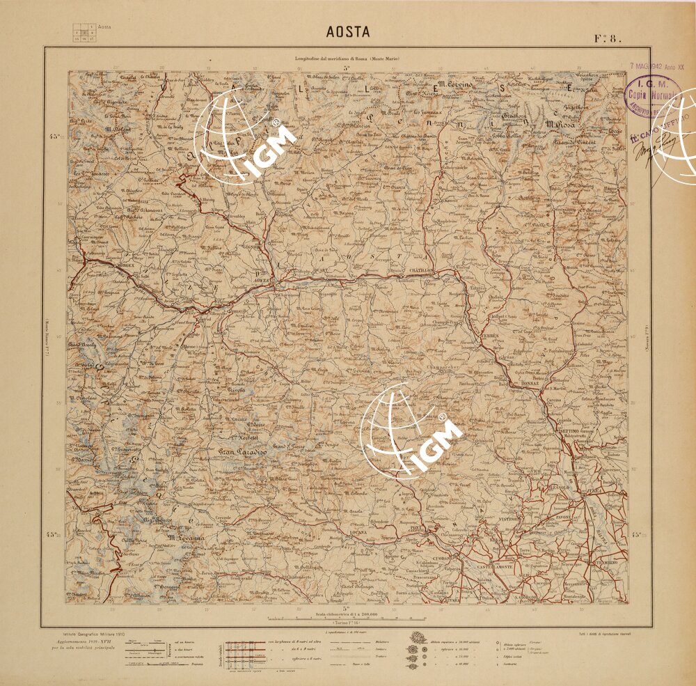 CARTA DEL REGNO D’ITALIA AL 200.000 – FOGLIO 08 – AOSTA