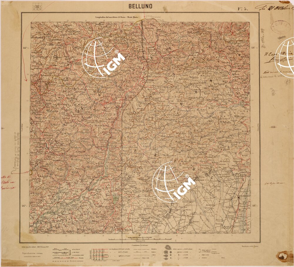 CARTA DEL REGNO D’ITALIA AL 200.000 – FOGLIO 05 – BELLUNO