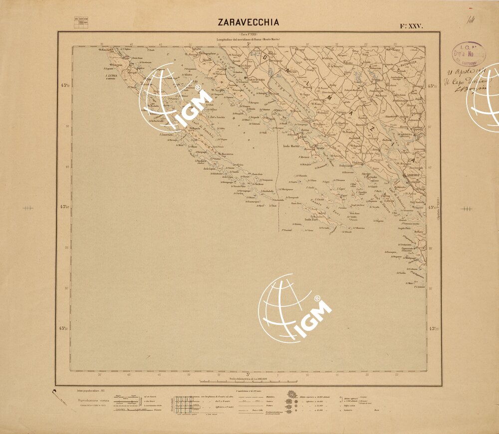 | Titolo proprio | CARTA DEL REGNO D'ITALIA AL 200.000 – FOGLIO XXV – ZARAVECCHIA |