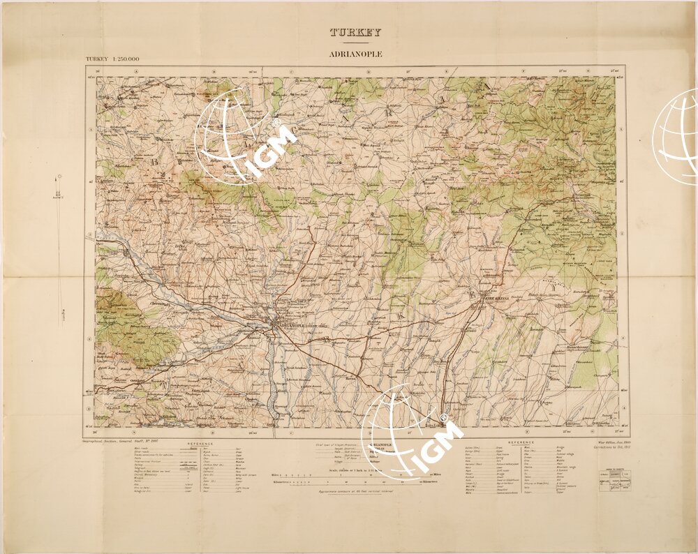 Serie di carte dell’ Asia Minore e Turchia edite dal War Office Inglese, compilate negli anni dal 1908 al 1916 presumibilmente inviate dall’ Inghilterra all’ Italia durante la prima guerra mondiale. ( file da SE000413 a SE000451 )