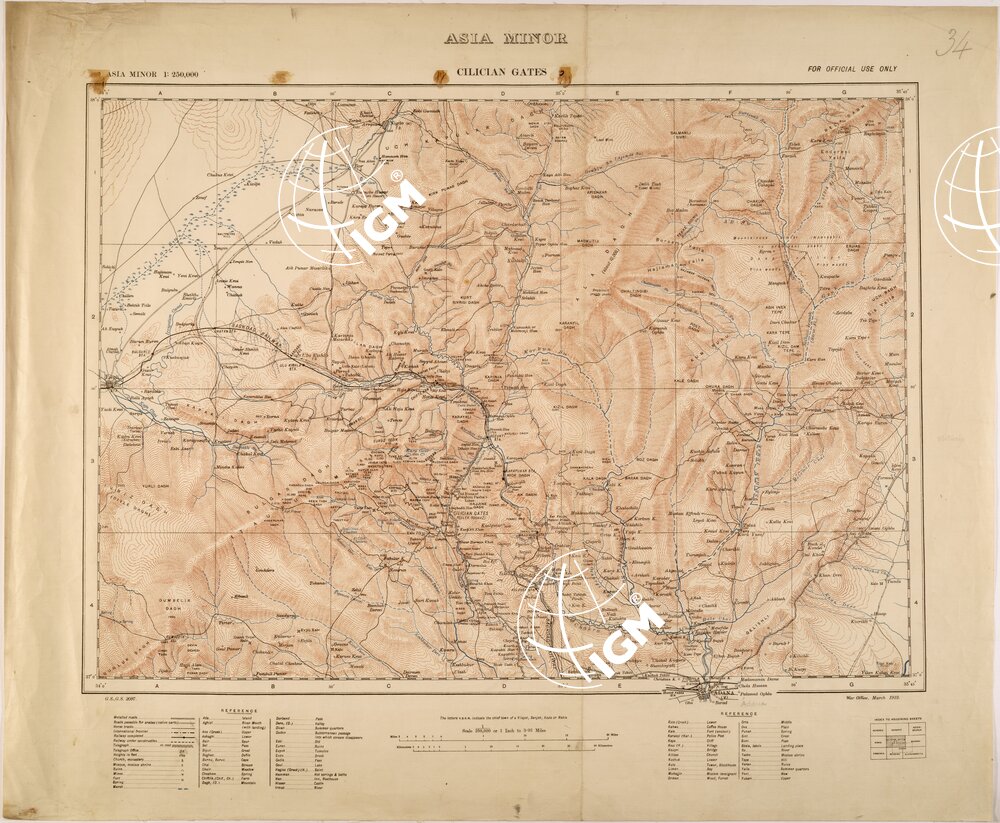Serie di carte dell’ Asia Minore e Turchia edite dal War Office Inglese, compilate negli anni dal 1908 al 1916 presumibilmente inviate dall’ Inghilterra all’ Italia durante la prima guerra mondiale. ( file da SE000413 a SE000451 )