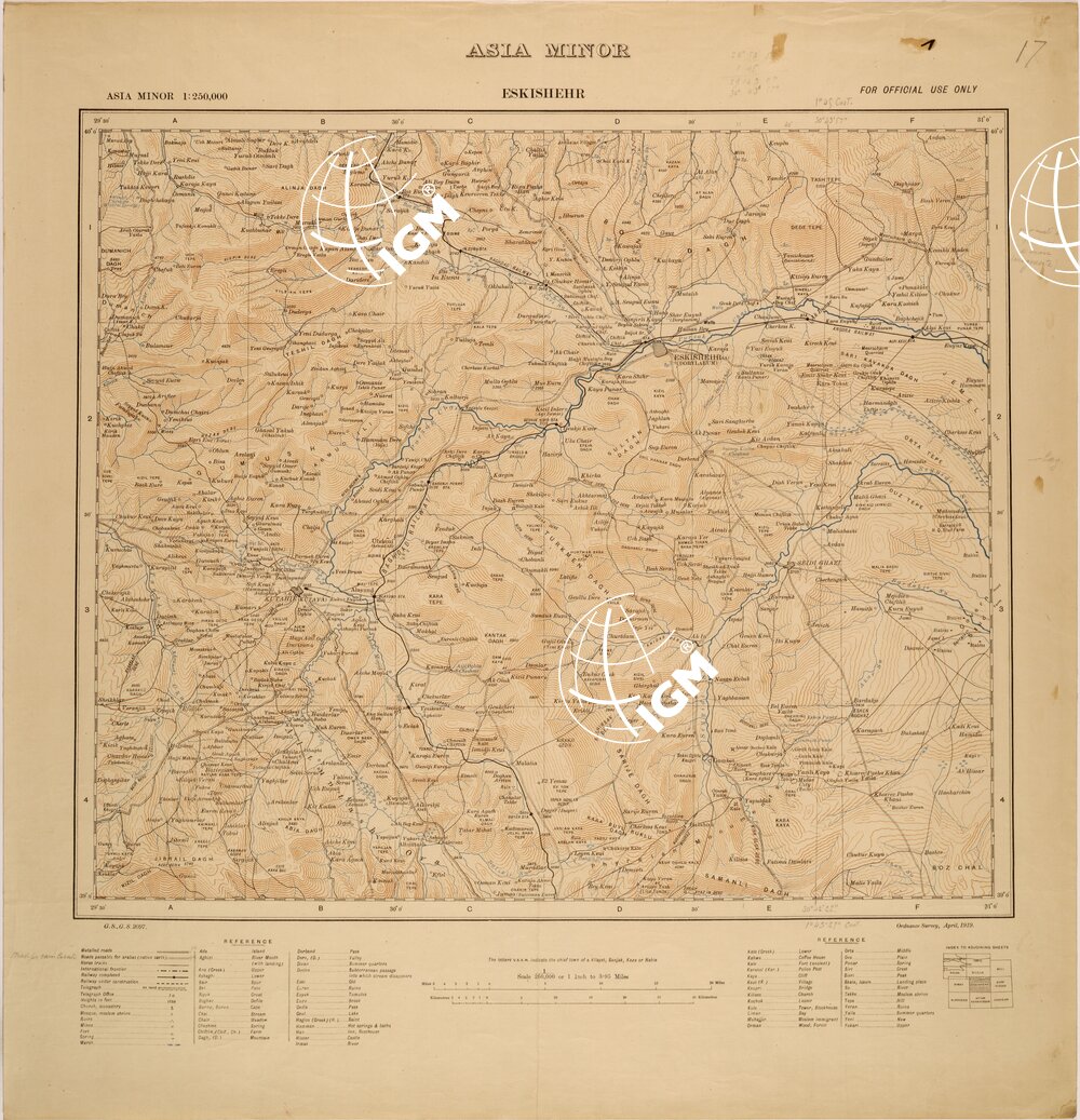 Serie di carte dell’ Asia Minore e Turchia edite dal War Office Inglese, compilate negli anni dal 1908 al 1916 presumibilmente inviate dall’ Inghilterra all’ Italia durante la prima guerra mondiale. ( file da SE000413 a SE000451 )