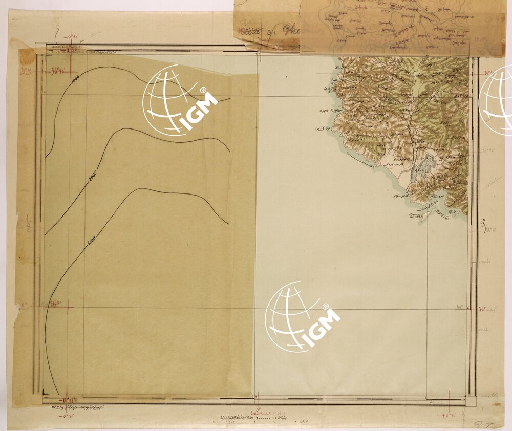 Carta Turca compilata negli anni dal 1909 al 1916 e stampata nella tipografia della sezione cartografica nel 1917 su alcuni fogli è sovrapposto un lucido con la traduzione Italiana della toponomastica.