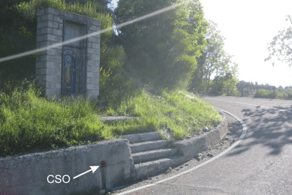 | Contrassegni | [{"simbolo_contrassegno":"B1","materializzazione":"(CSO) – Bullone infisso nel muro di scarpa difronte al bivio per la contrada Vallina, in corrispondenza della Cappella Votiva S. Elia"}] |