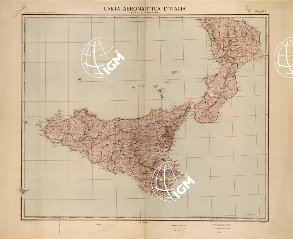 Dai “tipi” della carta corografica d’Italia al 500.000 per quanto riguarda il fondo,per la parte aeronautica (rosso e nero) è stato effettuato un nuovo disegno. Compilatore ten. col. Renato Grasso. Proiezione di Bonne.