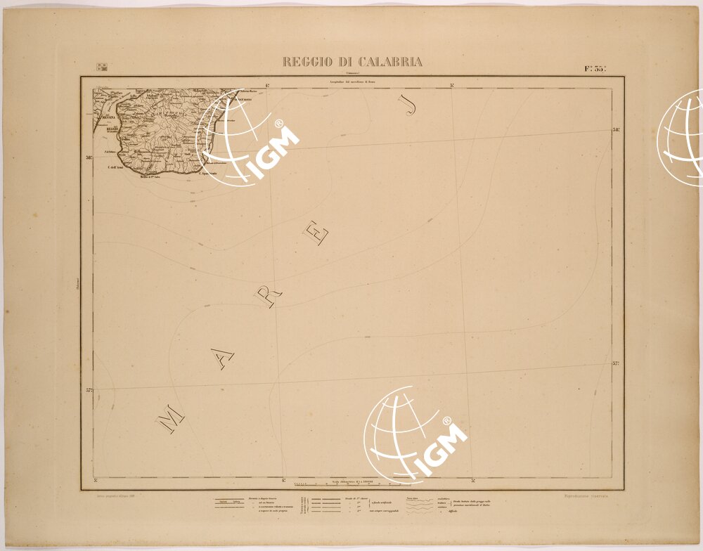 CARTA COROGRAFICA DEL REGNO D’ITALIA E DELLE REGIONI ADIACENTI FOGLIO 35 REGGIO CALABRIA