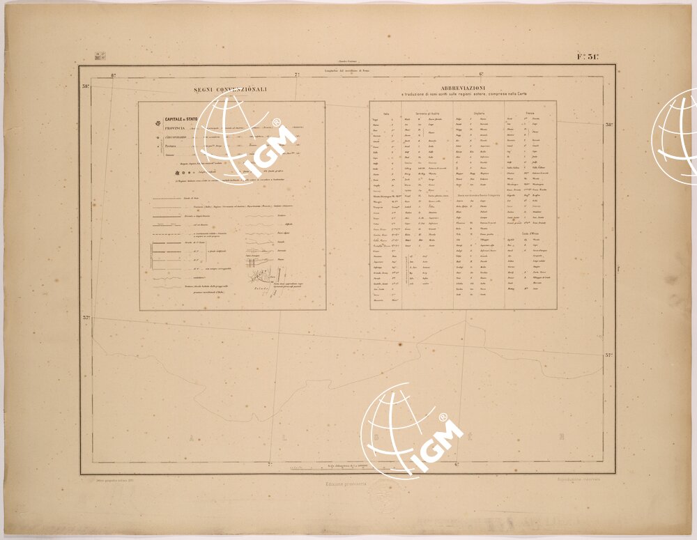 CARTA COROGRAFICA DEL REGNO D’ITALIA E DELLE REGIONI ADIACENTI FOGLIO 31 SEGNI CONVENZIONALI