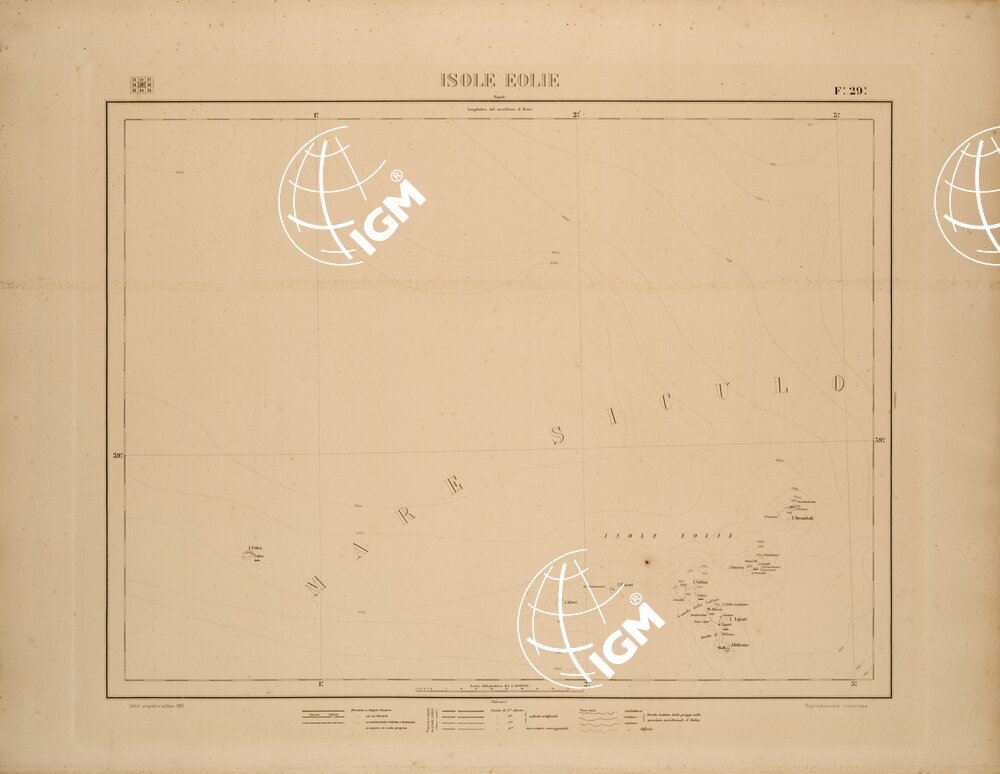 CARTA COROGRAFICA DEL REGNO D’ITALIA E DELLE REGIONI ADIACENTI FOGLIO 29 ISOLE EOLIE