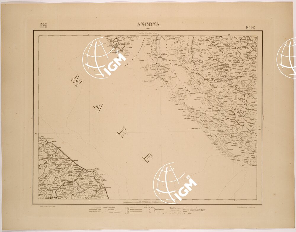 CARTA COROGRAFICA DEL REGNO D’ITALIA E DELLE REGIONI ADIACENTI FOGLIO 14 ANCONA