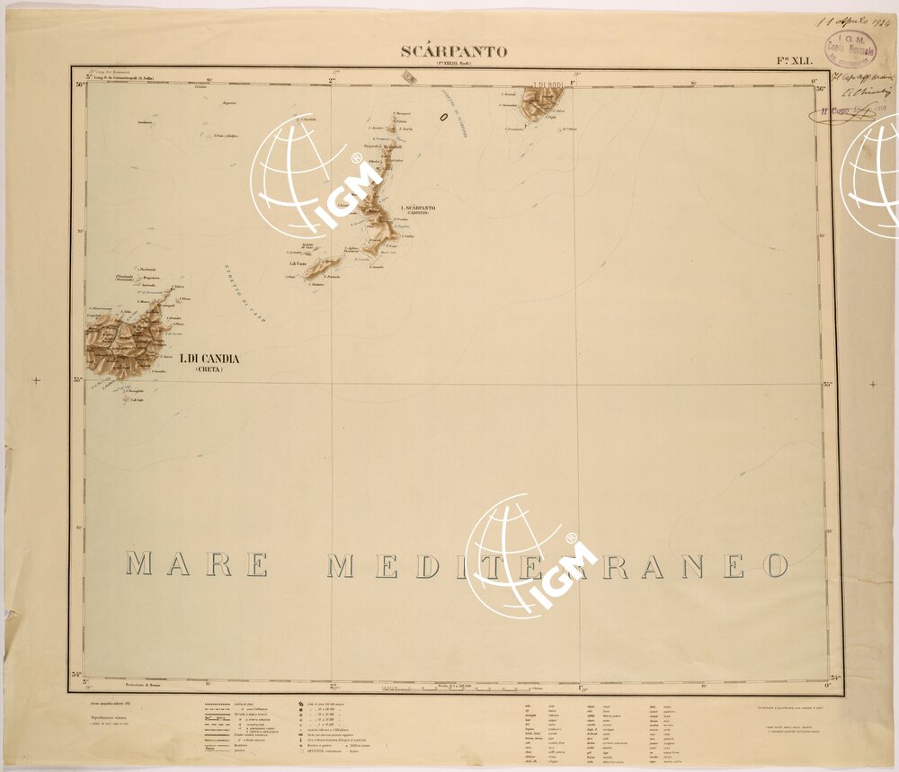 CARTA COROGRAFICA DELL’ ASIA MINORE – FOGLIO XLI – SCARPANTO