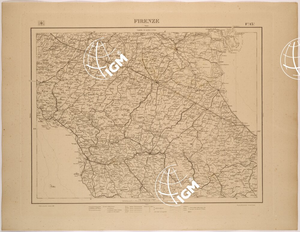 CARTA COROGRAFICA DEL REGNO D’ITALIA E DELLE REGIONI ADIACENTI FOGLIO 13 FIRENZE