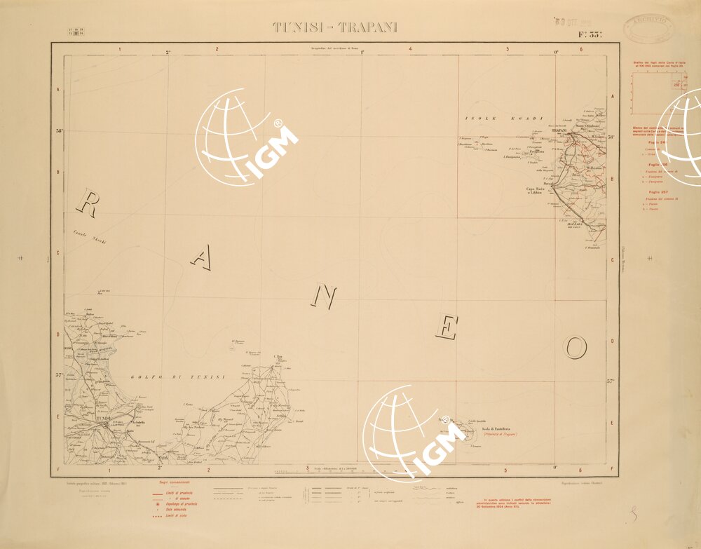 CARTA COROGRAFICA D’ITALIA FOGLIO 33 TUNISI TRAPANI