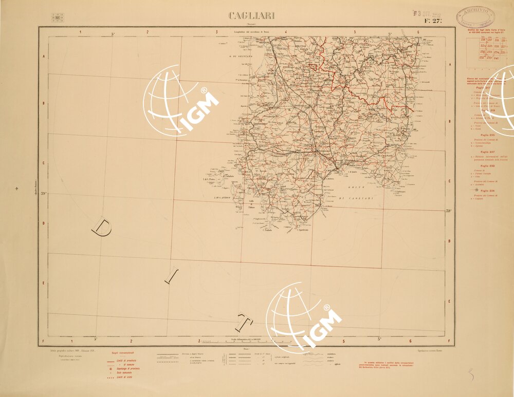 CARTA COROGRAFICA D’ITALIA FOGLIO 27 CAGLIARI