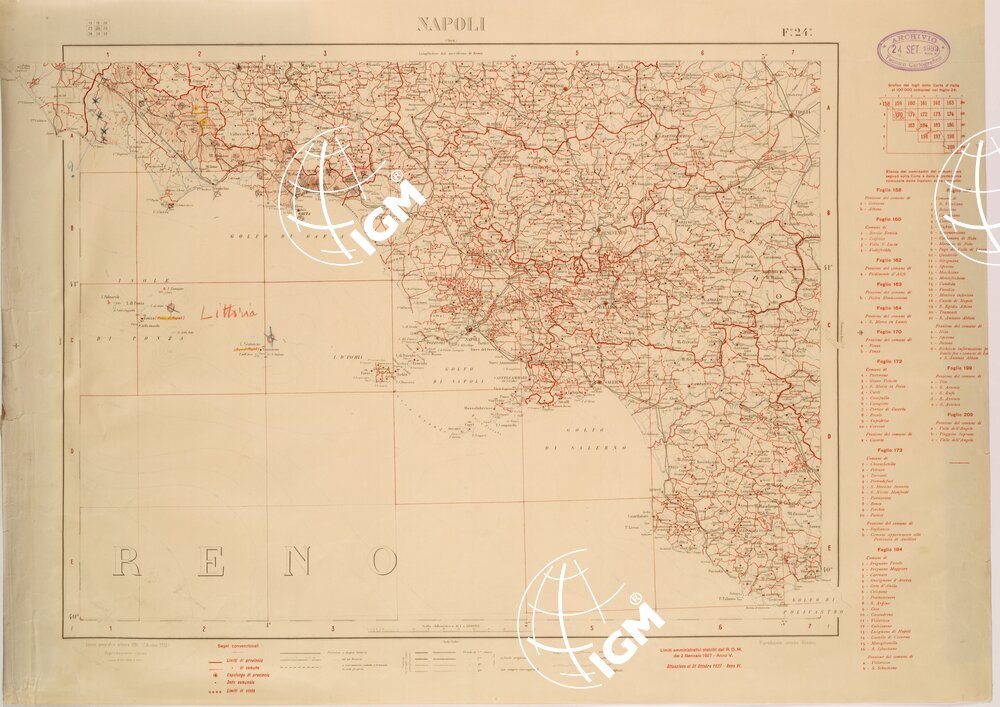 CARTA COROGRAFICA D’ITALIA FOGLIO 24 NAPOLI