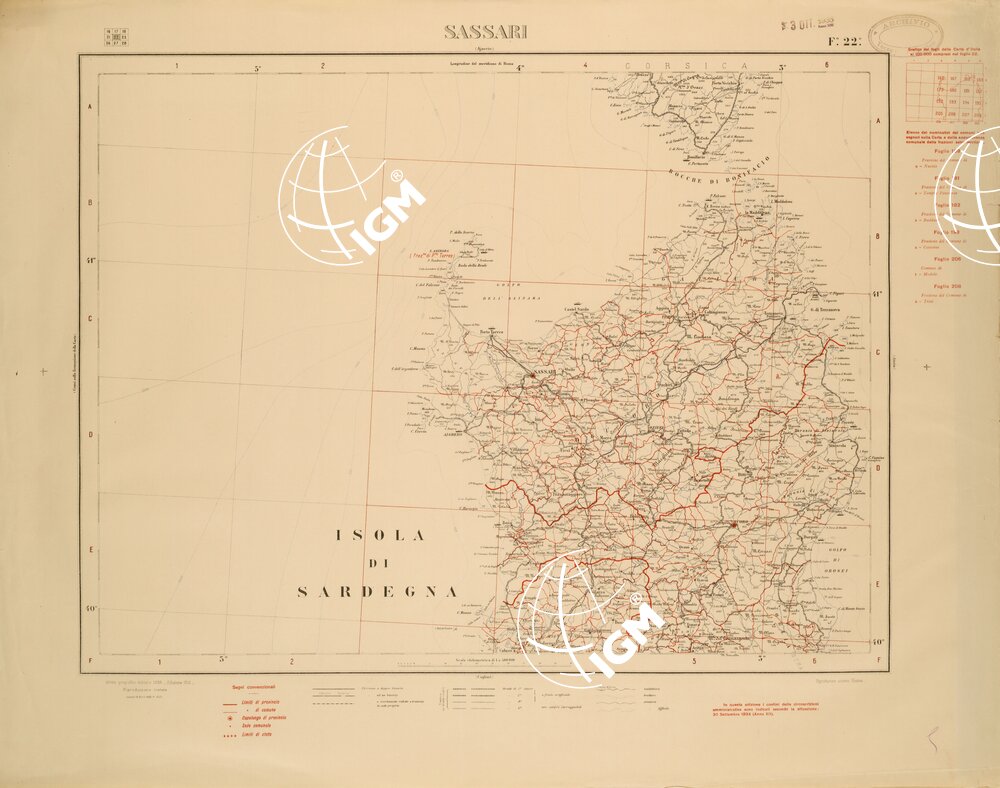 CARTA COROGRAFICA D’ITALIA FOGLIO 22 SASSARI