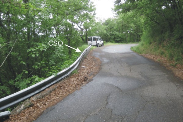 | Contrassegni | [{"simbolo_contrassegno":"B1","materializzazione":"(CSO) – Bullone infisso nel cordolo di ancoraggio del guard-rail, lato valle"}] |