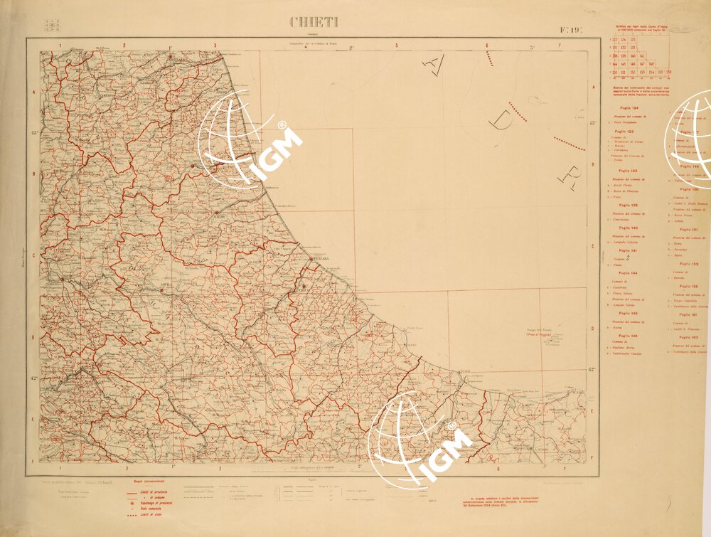 CARTA COROGRAFICA D’ITALIA FOGLIO 19 CHIETI