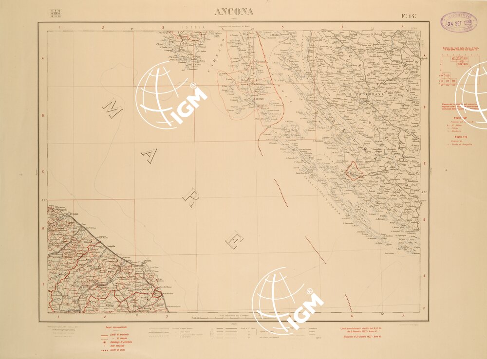 CARTA COROGRAFICA D’ITALIA FOGLIO 14 ANCONA