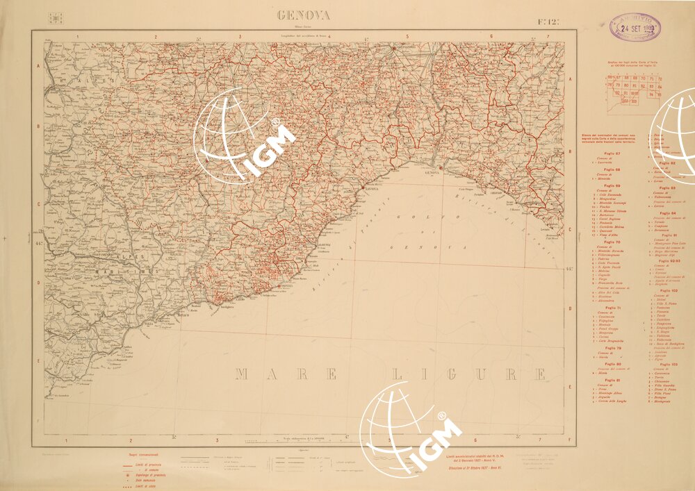 CARTA COROGRAFICA D’ITALIA FOGLIO 12 GENOVA