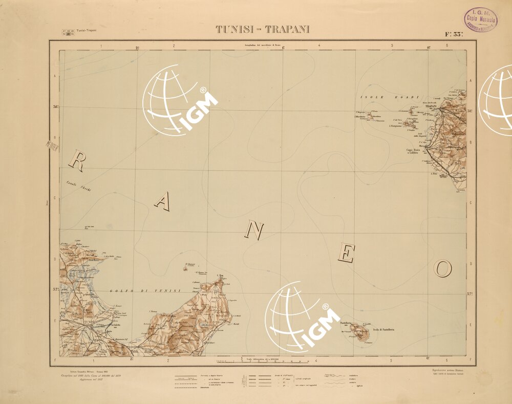 CARTA COROGRAFICA DEL REGNO D’ITALIA E DELLE REGIONI ADIACENTI EDIZIONE 1935-1937 FOGLIO 33 TUNISI-TRAPANI