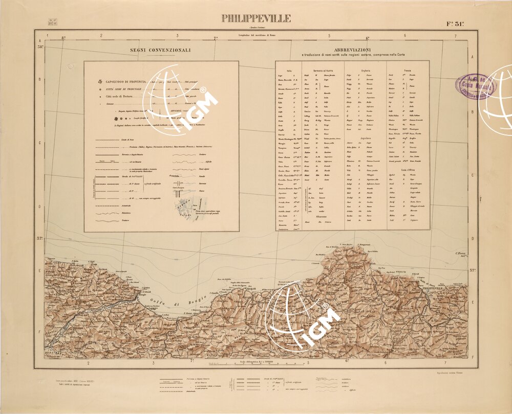 CARTA COROGRAFICA DEL REGNO D’ITALIA E DELLE REGIONI ADIACENTI EDIZIONE 1935-1937 FOGLIO 31 PHILIPPEVILLE