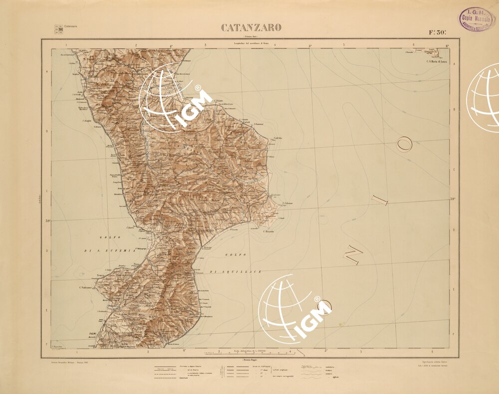 CARTA COROGRAFICA DEL REGNO D’ITALIA E DELLE REGIONI ADIACENTI EDIZIONE 1935-1937 FOGLIO 30 CATANZARO