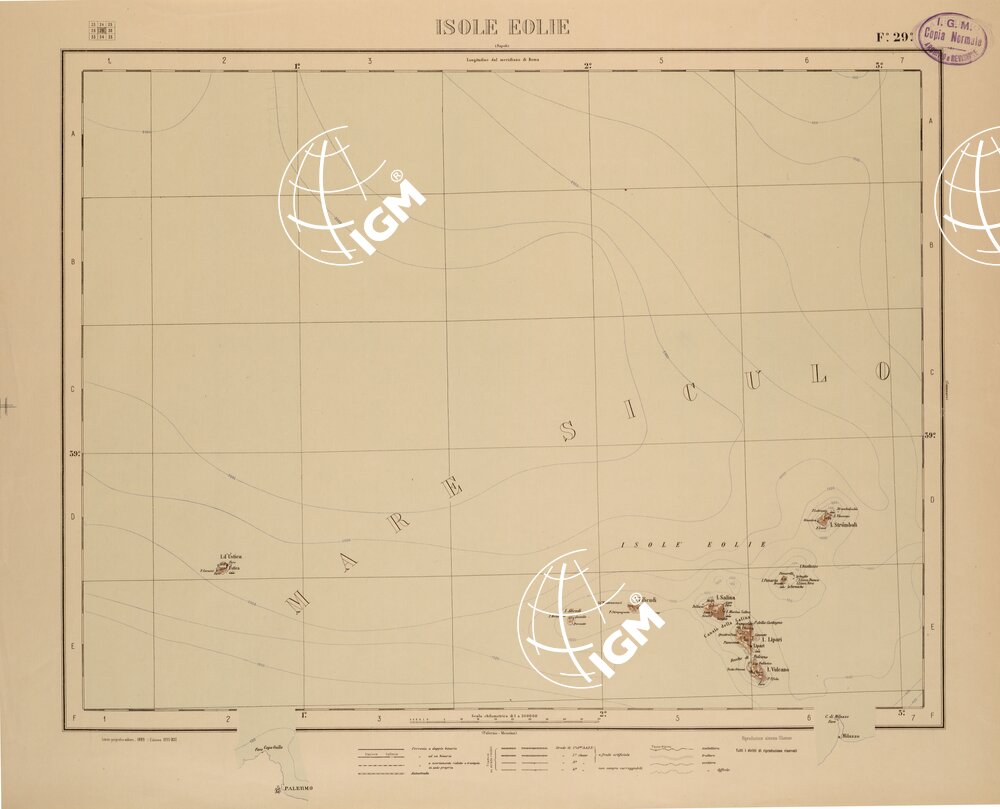 CARTA COROGRAFICA DEL REGNO D’ITALIA E DELLE REGIONI ADIACENTI EDIZIONE 1935-1937 FOGLIO 29 ISOLE EOLIE