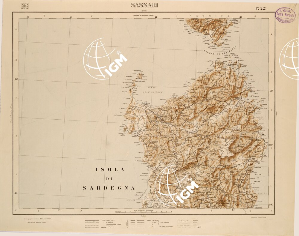 CARTA COROGRAFICA DEL REGNO D’ITALIA E DELLE REGIONI ADIACENTI EDIZIONE 1935-1937 FOGLIO 22 SASSARI