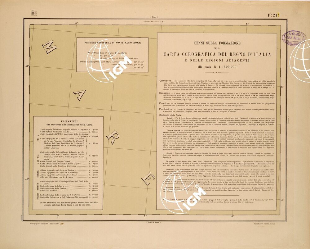 CARTA COROGRAFICA DEL REGNO D’ITALIA E DELLE REGIONI ADIACENTI EDIZIONE 1935-1937 FOGLIO 21 CENNI SULLA FORMAZIONE DELLA CARTA