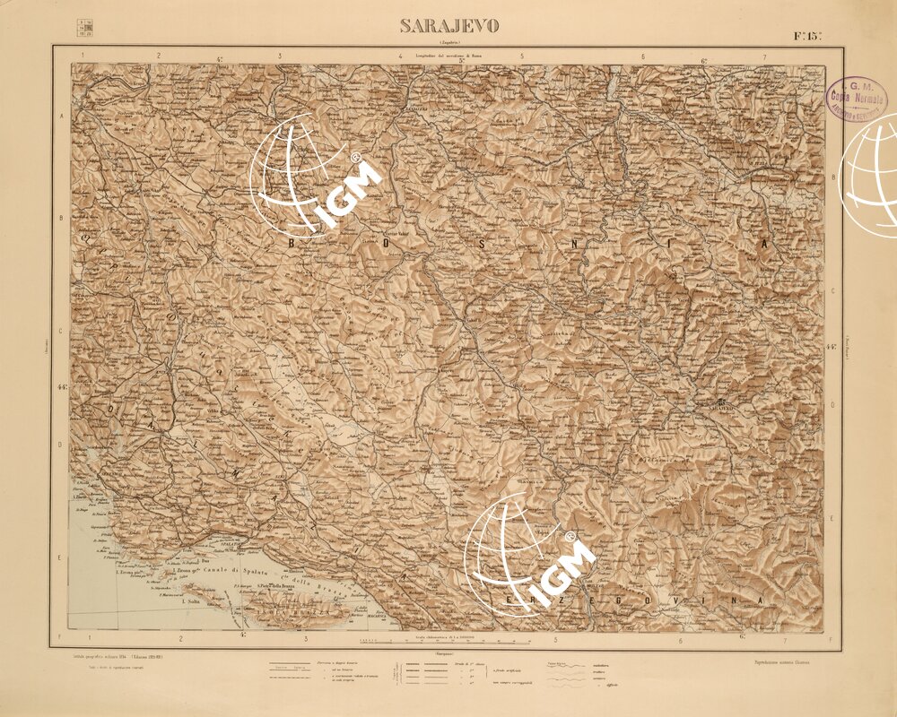 CARTA COROGRAFICA DEL REGNO D’ITALIA E DELLE REGIONI ADIACENTI EDIZIONE 1935-1937 FOGLIO 15 SARAJEVO