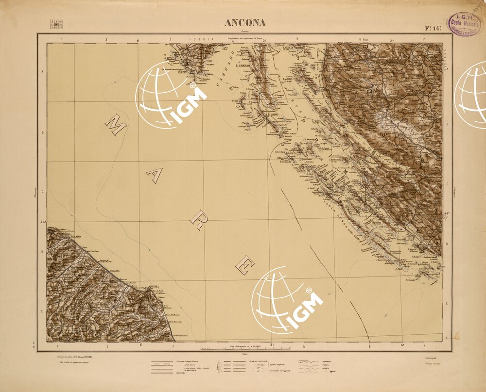 CARTA COROGRAFICA DEL REGNO D’ITALIA E DELLE REGIONI ADIACENTI EDIZIONE 1935-1937 FOGLIO 14 ANCONA