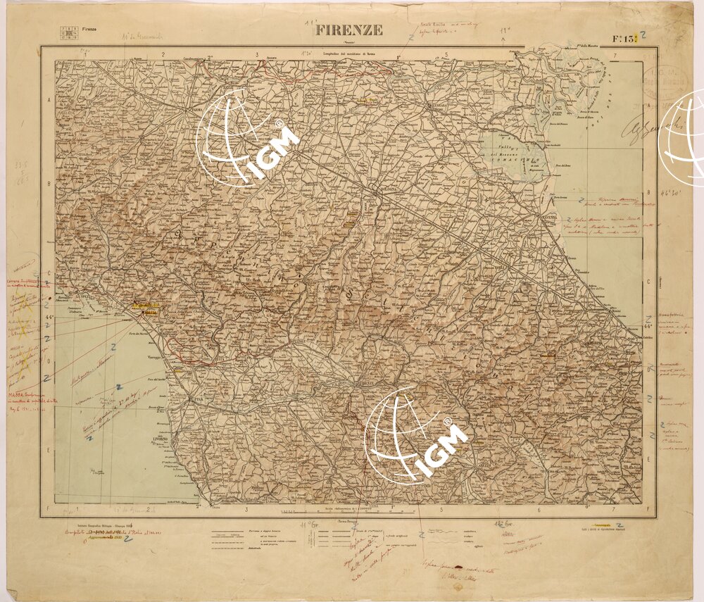 CARTA COROGRAFICA DEL REGNO D’ITALIA E DELLE REGIONI ADIACENTI EDIZIONE 1935-1937 FOGLIO 13 FIRENZE