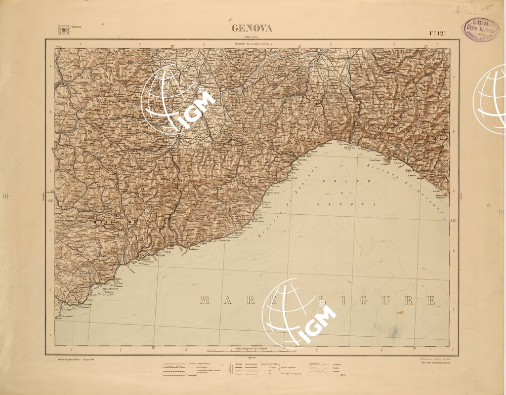 CARTA COROGRAFICA DEL REGNO D’ITALIA E DELLE REGIONI ADIACENTI EDIZIONE 1935-1937 FOGLIO 12 GENOVA