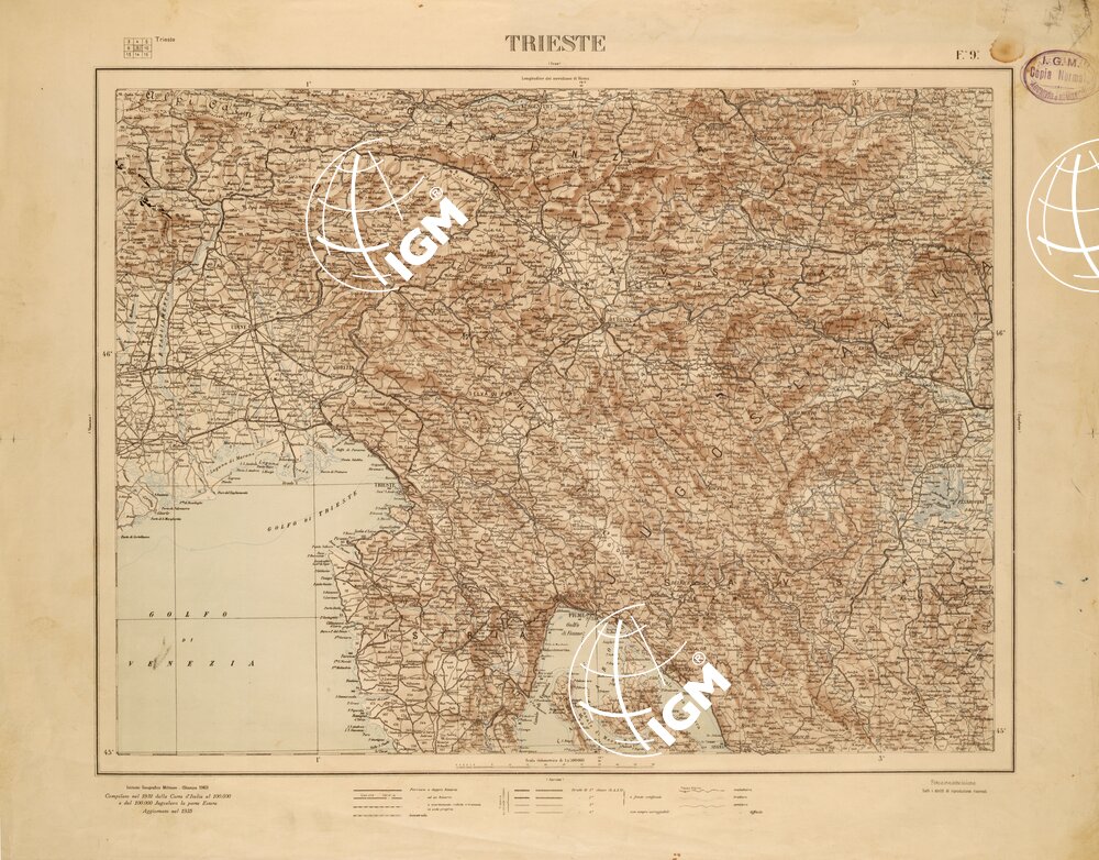 CARTA COROGRAFICA DEL REGNO D’ITALIA E DELLE REGIONI ADIACENTI EDIZIONE 1935-1937 FOGLIO 9 TRIESTE