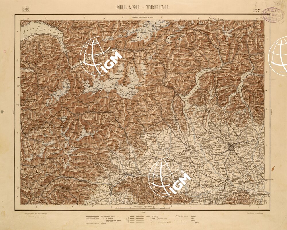 CARTA COROGRAFICA DEL REGNO D’ITALIA E DELLE REGIONI ADIACENTI EDIZIONE 1935-1937 FOGLIO 7 MILANO -TORINO