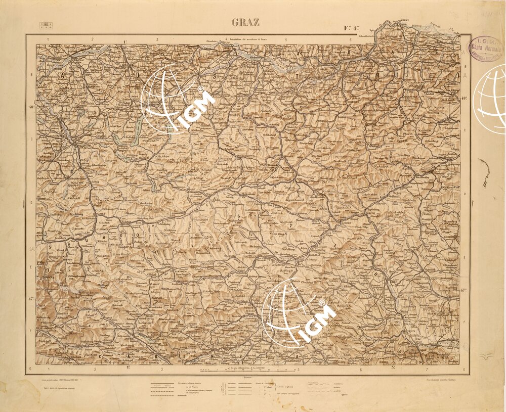 CARTA COROGRAFICA DEL REGNO D’ITALIA E DELLE REGIONI ADIACENTI EDIZIONE 1935-1937 FOGLIO 4 GRAZ